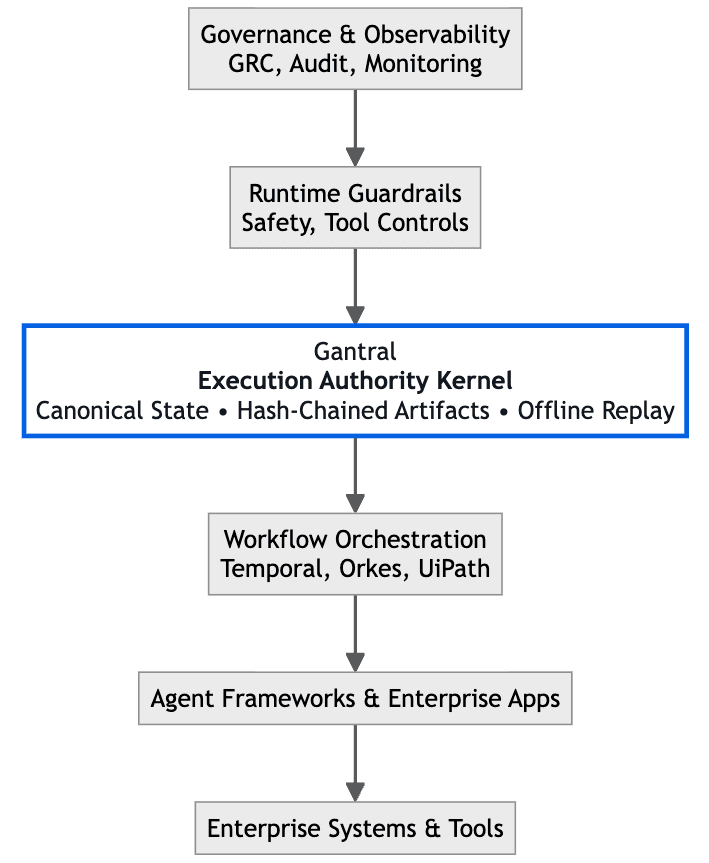 Gantral enables incremental, reversible introduction of deterministic authority without rewriting agents.